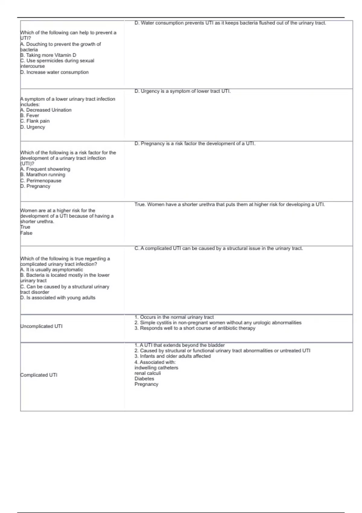 D. Water consumption prevents UTI as it keeps bacteria flushed out of the urinary tract.