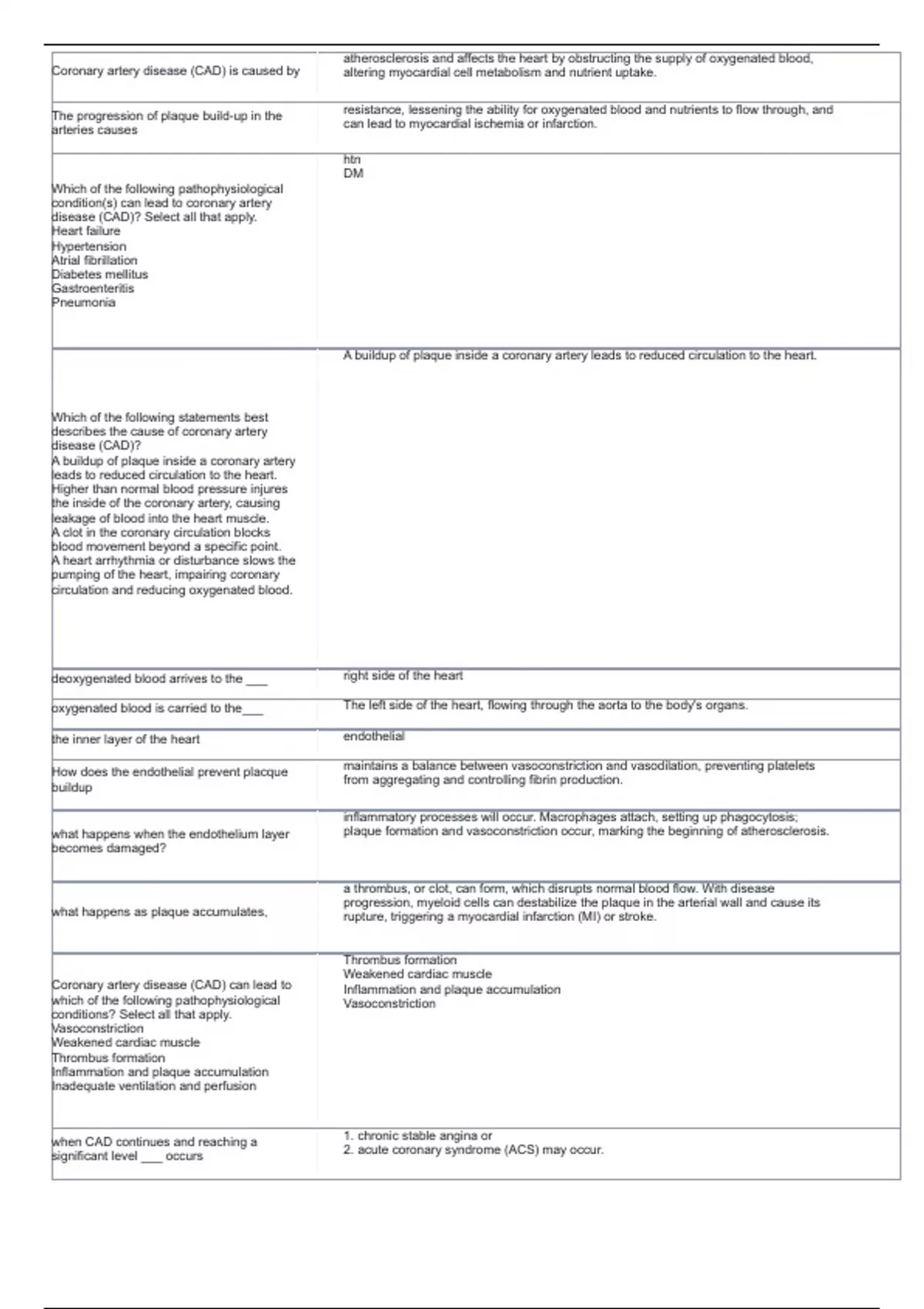 Coronary artery disease (CAD) can lead to Inflammation and plaque accumulation