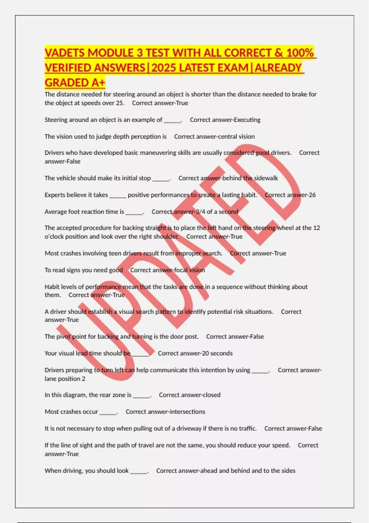 Most crashes occur _____. Correct answer-intersections