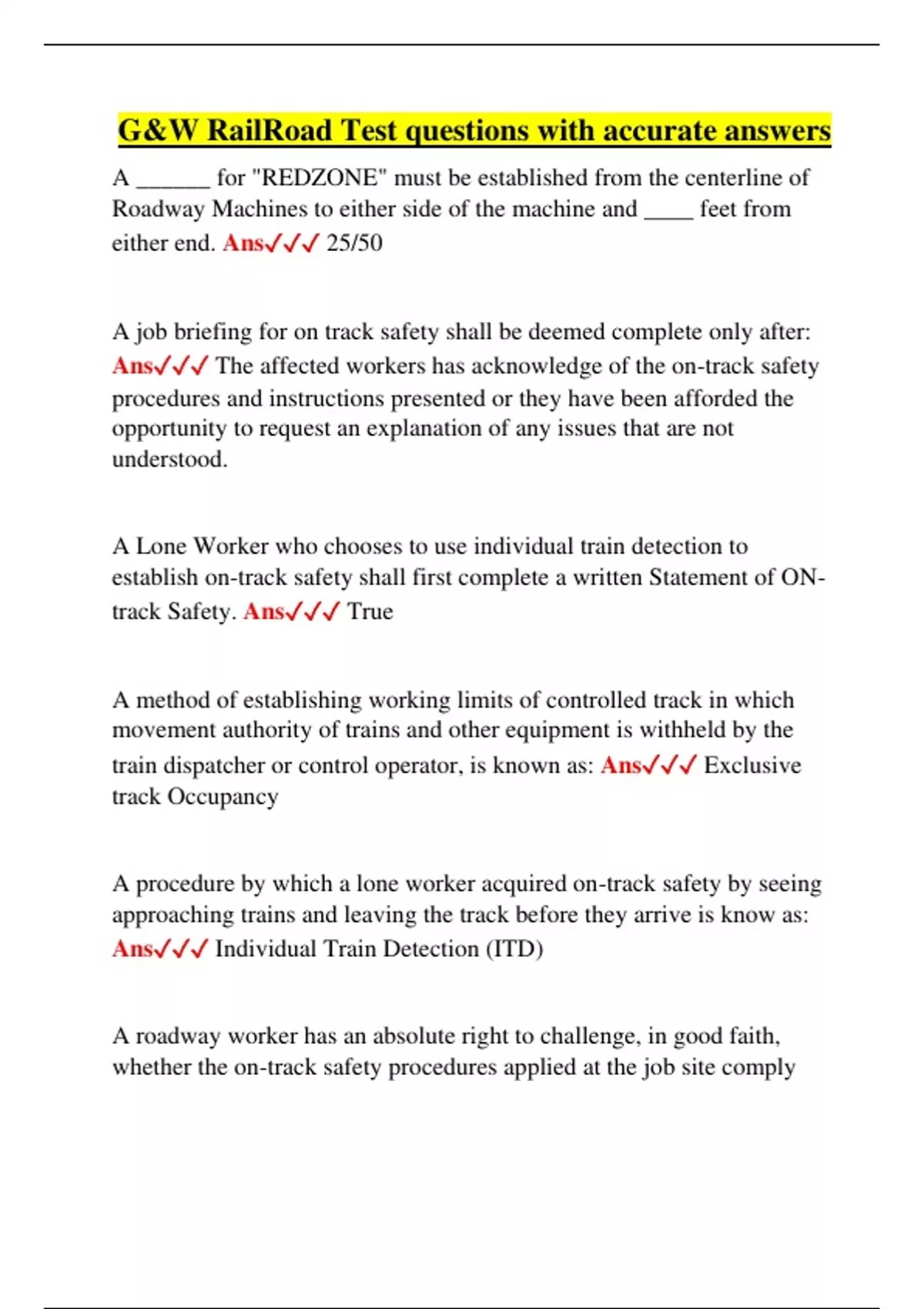 Ans✓✓✓ The affected workers has acknowledge of the on-track safety