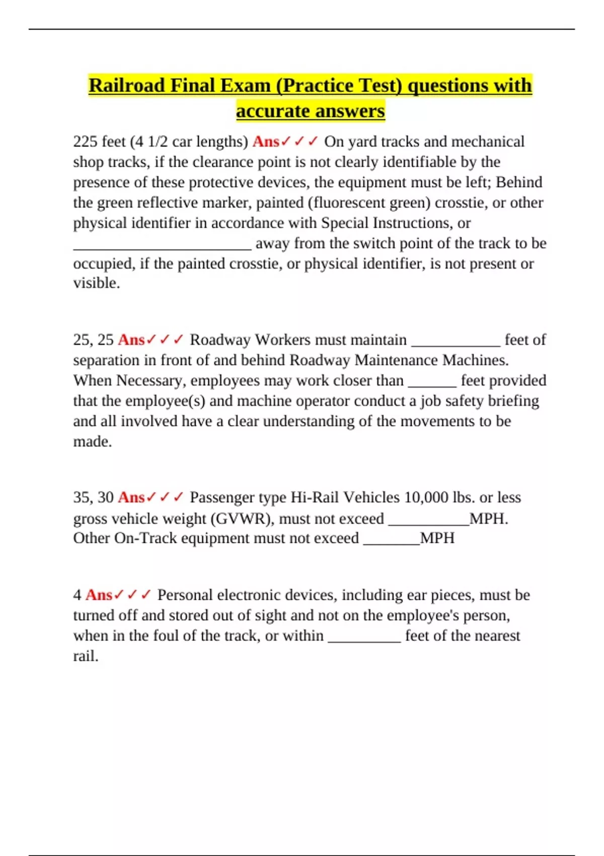 225 feet (4 1/2 car lengths) Ans✓✓✓ On yard tracks and mechanical