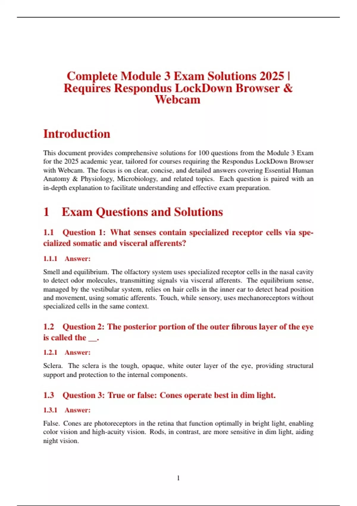 Complete Module 3 Exam Solutions 2025 | Requires Respondus LockDown Browser & Webcam Introduction This document provides comprehensive solutions for 100 questions from the Module 3 Exam for the 2025 academic year, tailored for courses requiring the Respondus LockDown Browser with Webcam. The focus is on clear, concise, and detailed answers covering Essential Human Anatomy & Physiology, Microbiology, and related topics. Each question is paired with an in-depth explanation to facilitate understanding and effective exam preparation.