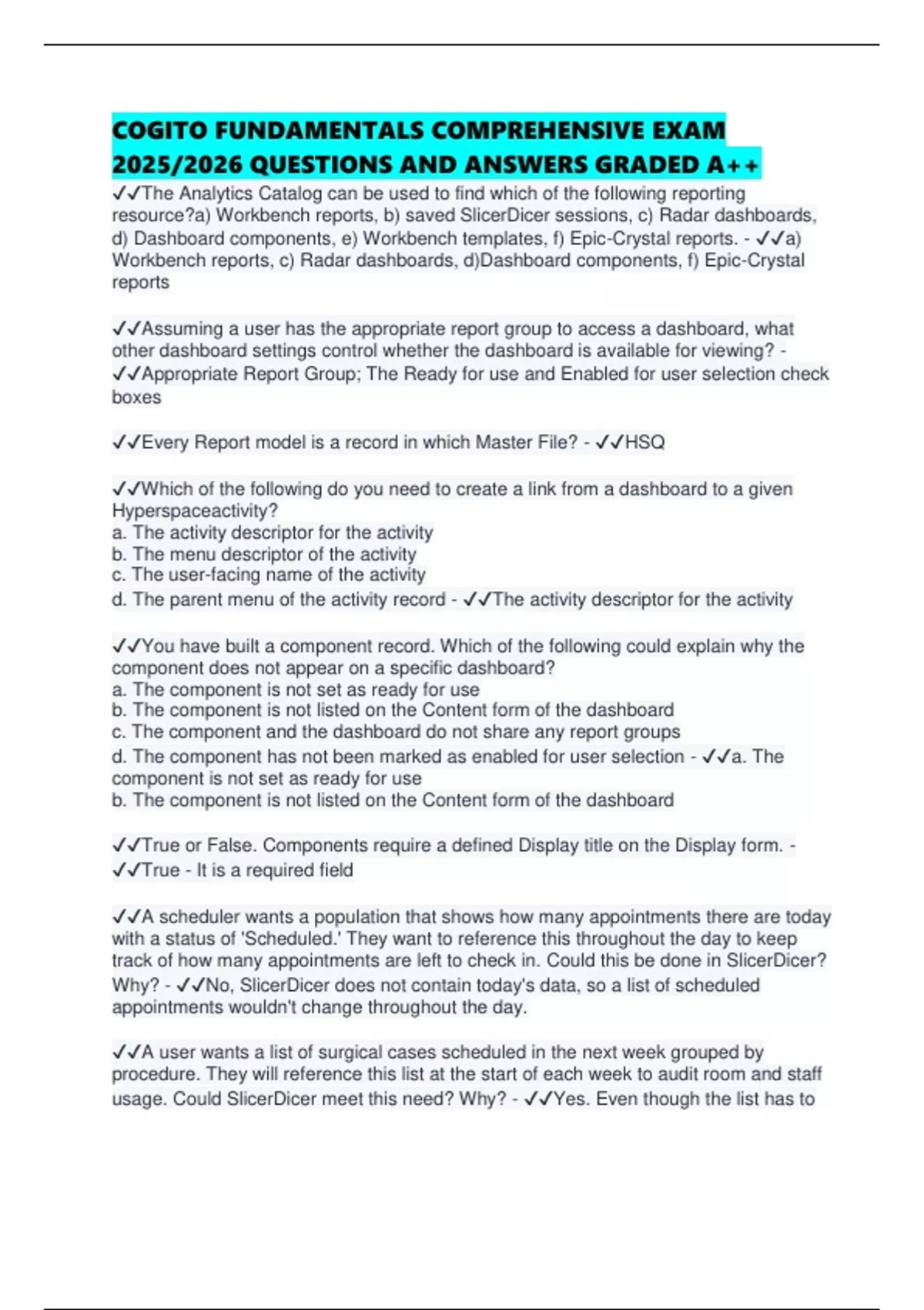 d) Dashboard components, e) Workbench templates, f) Epic-Crystal reports. - ✔✔a)