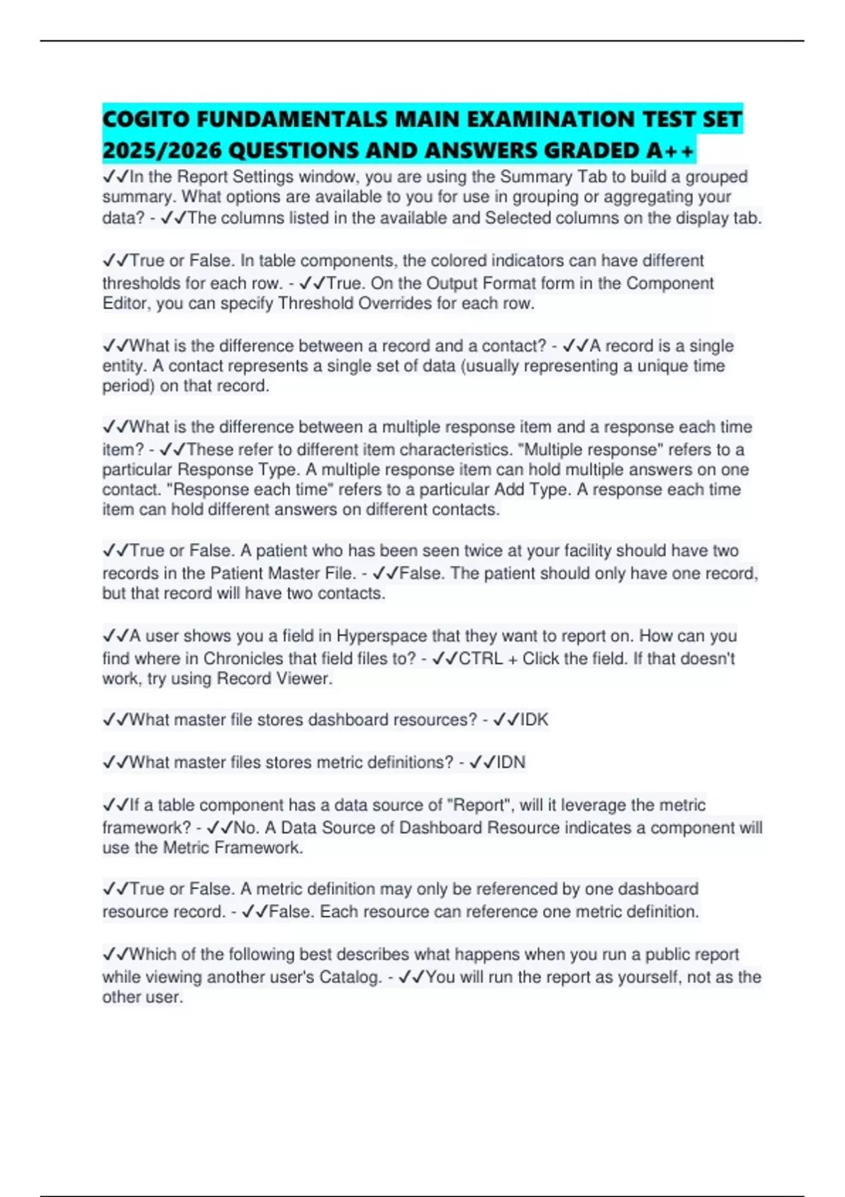 COGITO FUNDAMENTALS MAIN EXAMINATION TEST SET 2025/2026 QUESTIONS AND ANSWERS GRADED A++