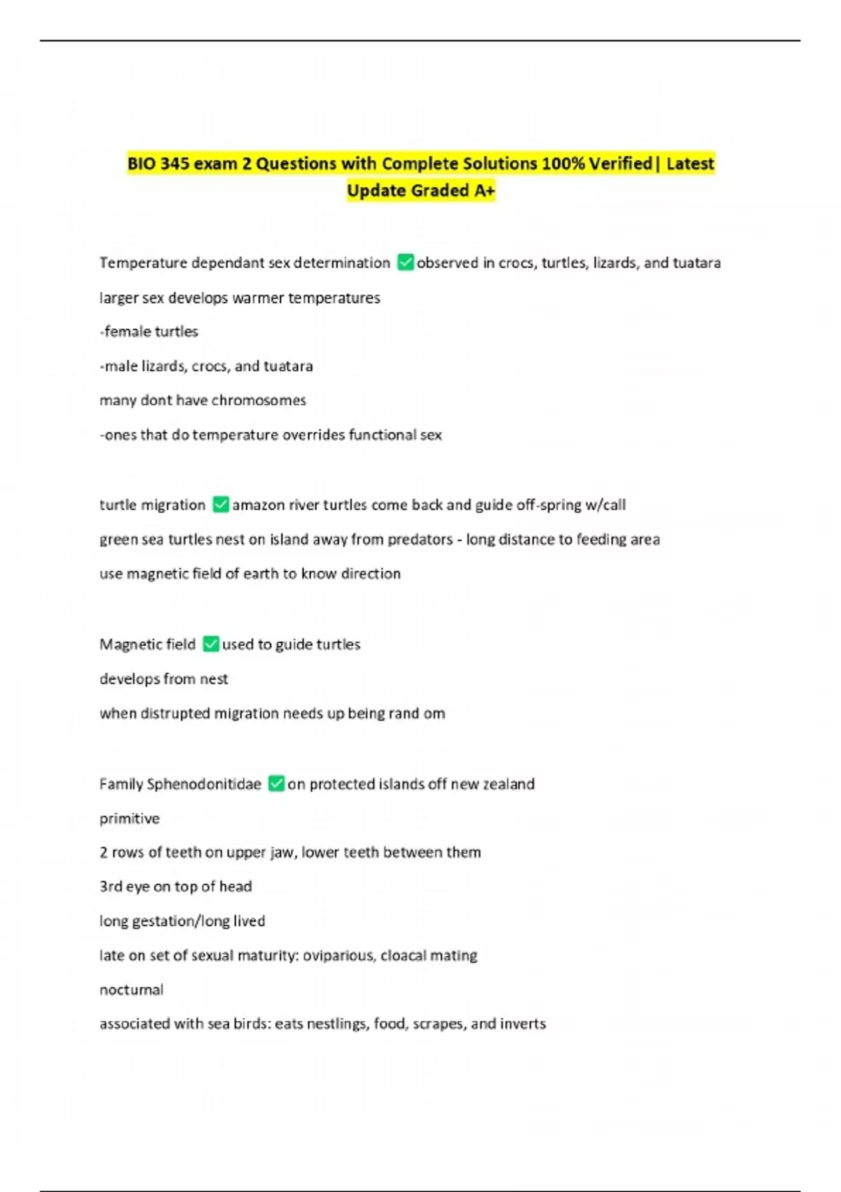 BIO 345 exam 2 Questions with Complete Solutions 100% Verified| Latest Update Graded A+