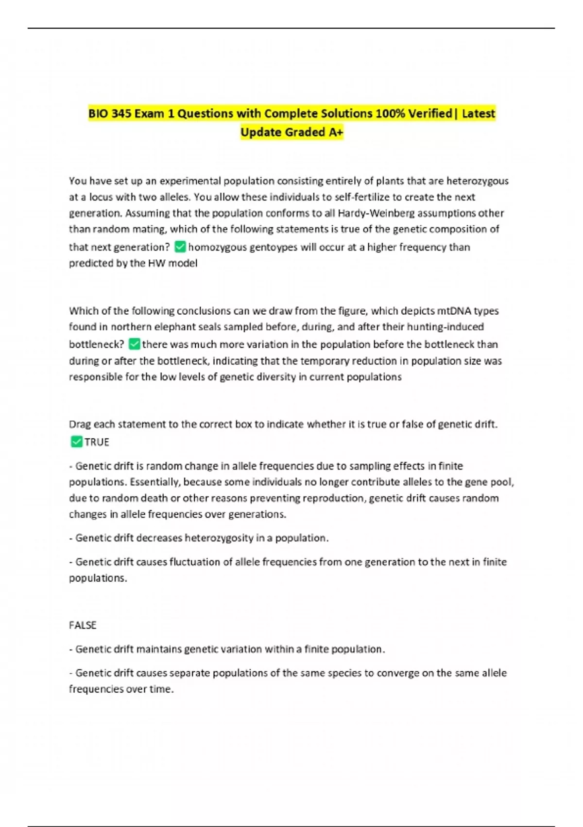 PACKAGE-::BIO 345 EXAMS WITH COMPLETE SOLUTIONS