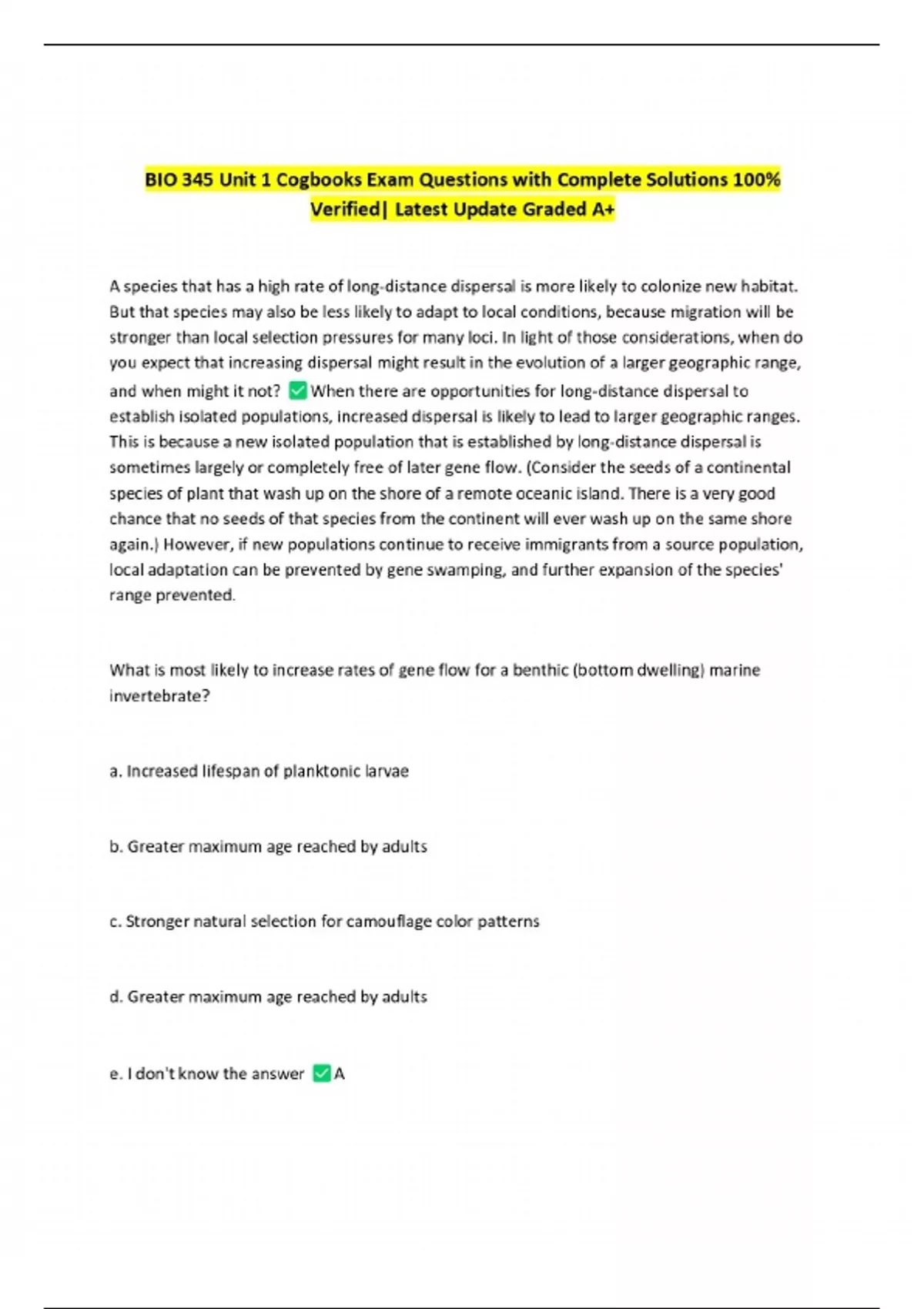 BIO 345 Unit 1 Cogbooks Exam Questions with Complete Solutions 100% Verified| Latest Update Graded A+
