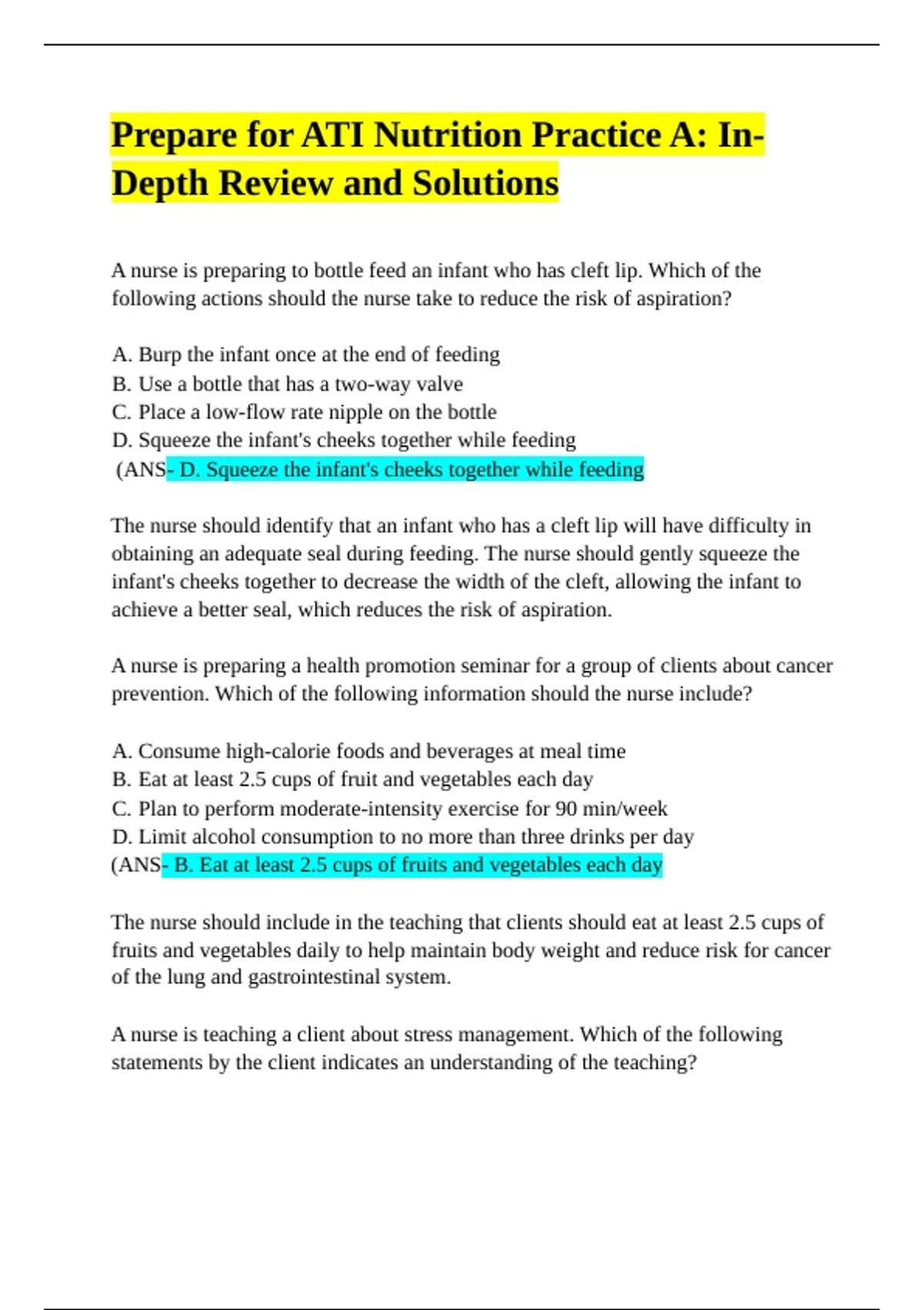 Prepare for ATI Nutrition Practice A: In-Depth Review and Solutions