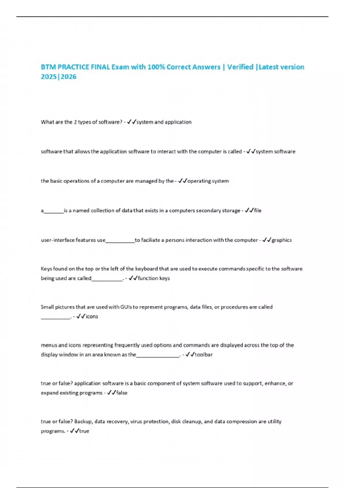 BTM PRACTICE FINAL Exam with 100% Correct Answers | Verified |Latest version 2025|2026