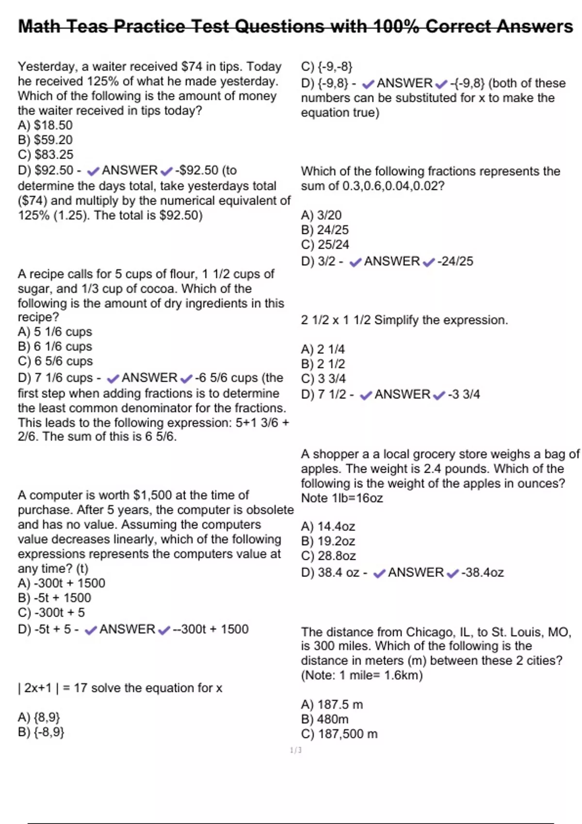D) $92.50 - ANSWER -$92.50 (to Which of the following fractions represents the