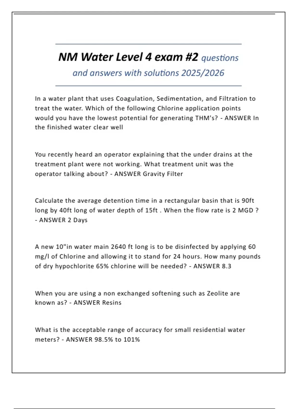 NM Water Level 4 exam #2 questions and answers with solutions 2025/2026