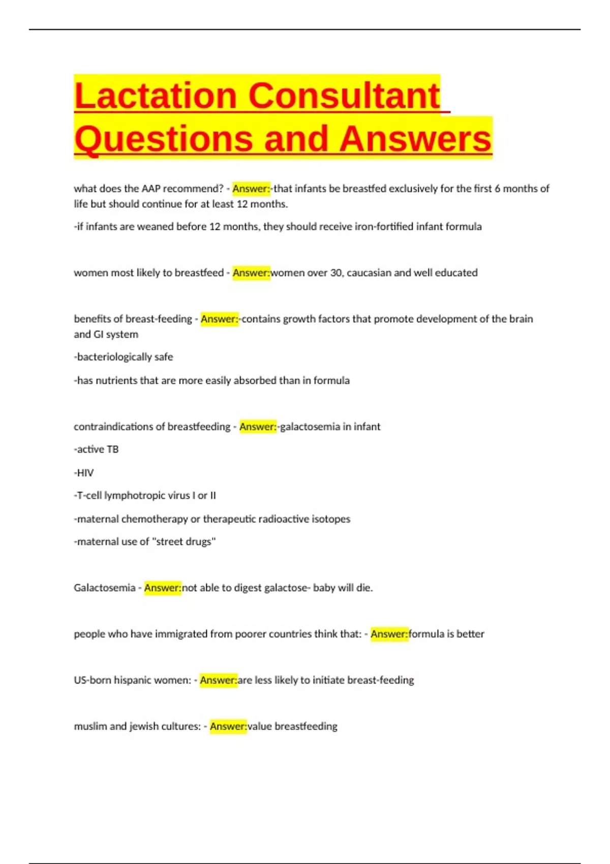contraindications of breastfeeding - Answer:-galactosemia in infant
