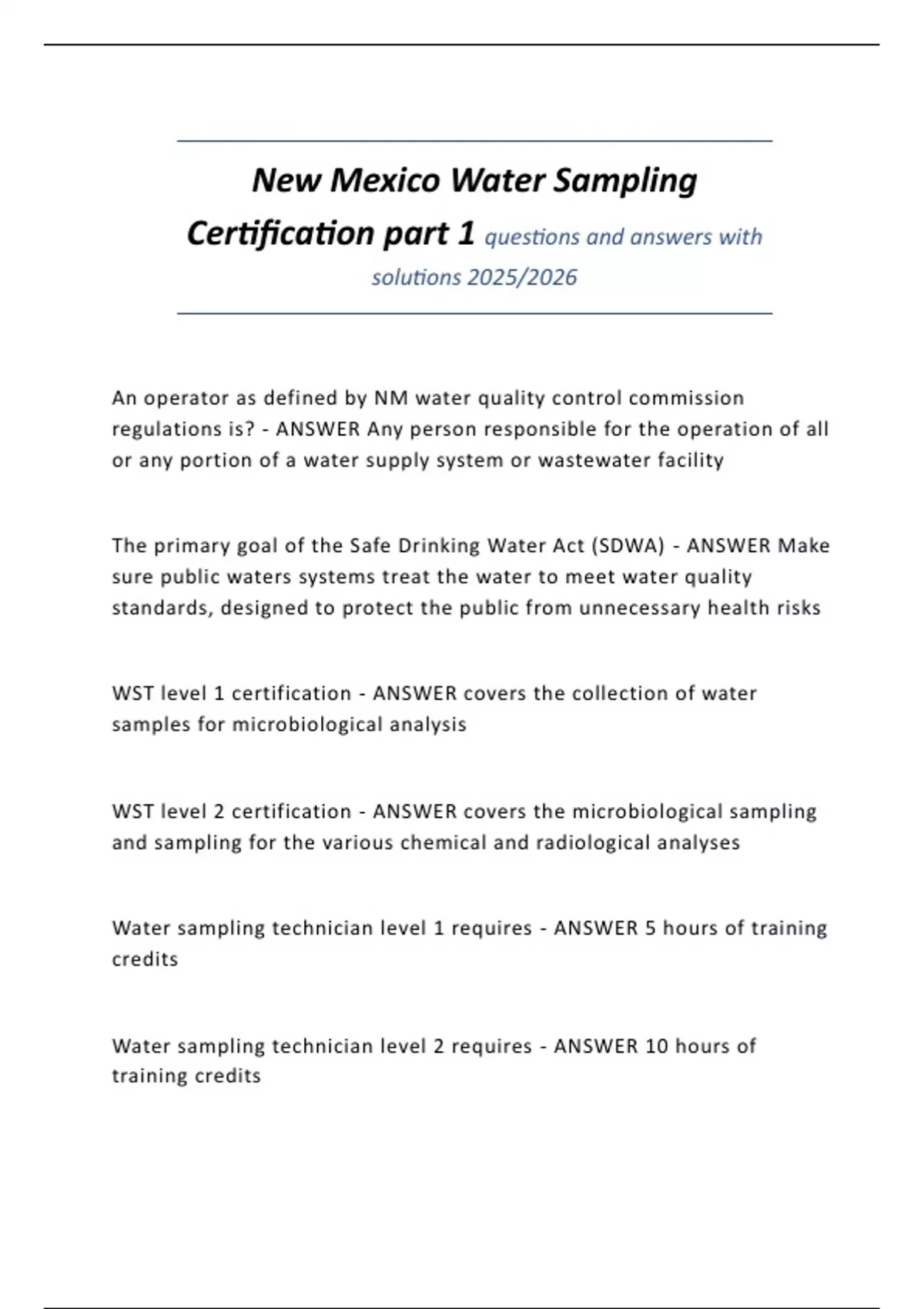 New Mexico Water Sampling Certification part 1 questions and answers with solutions 2025/2026