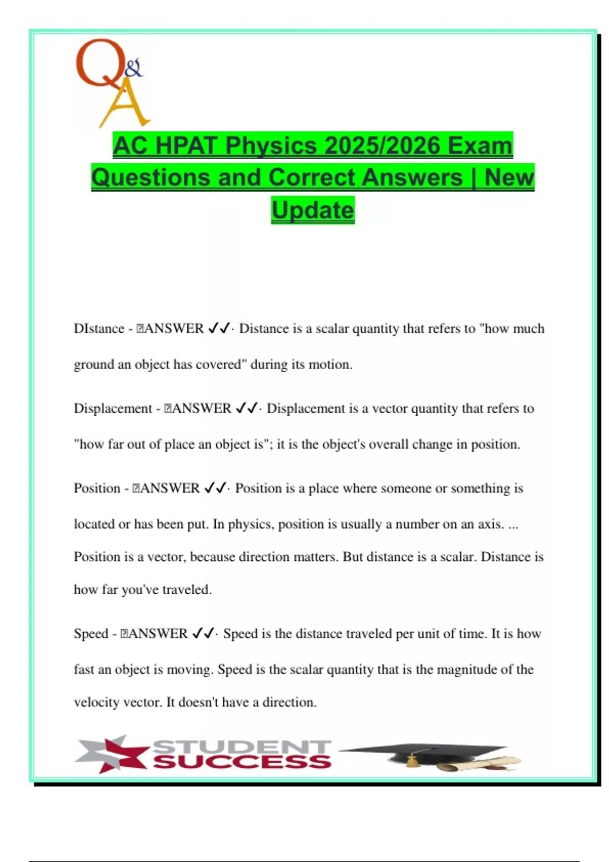 DIstance - 🧠ANSWER ✔✔· Distance is a scalar quantity that refers to "how much