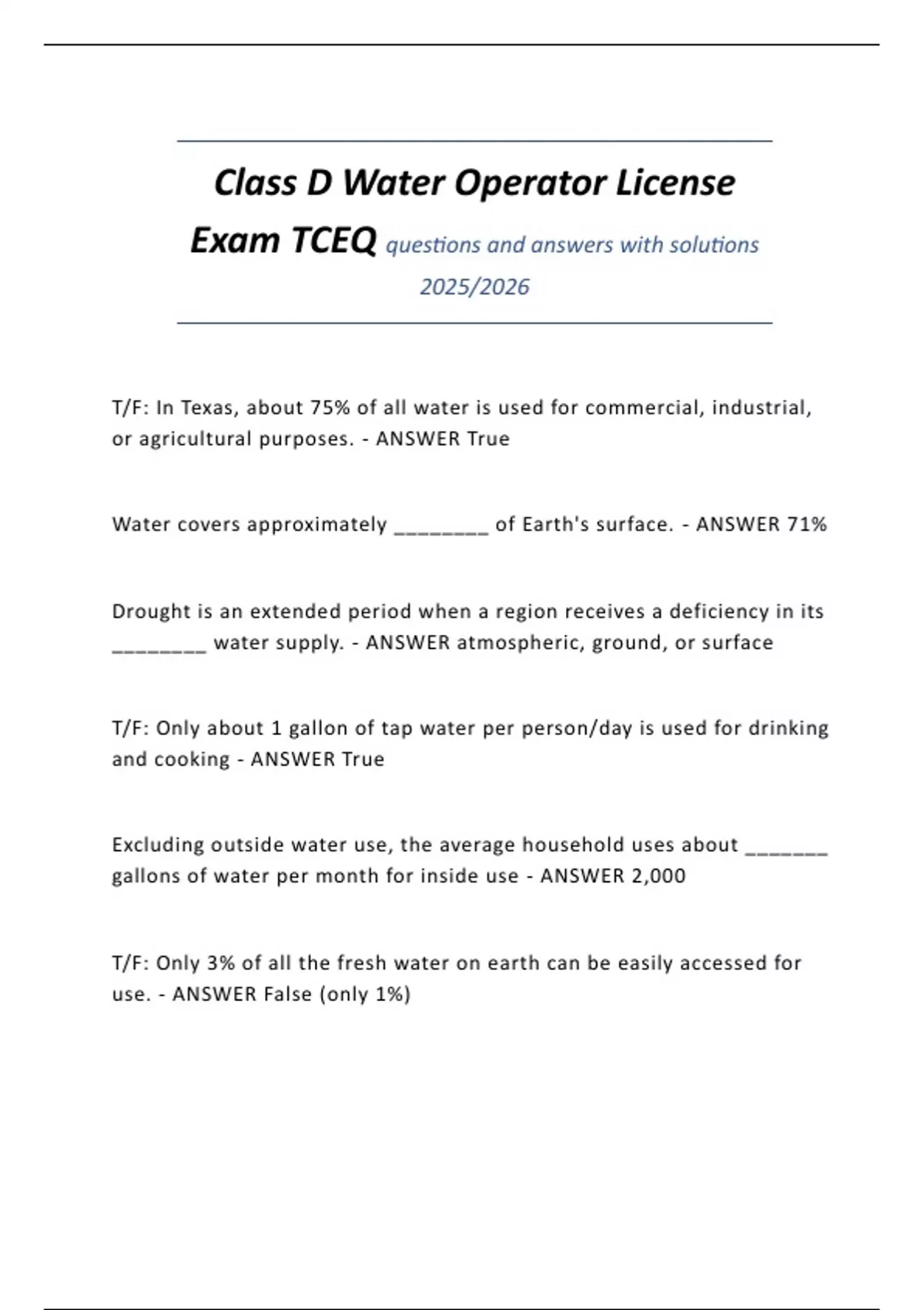 Exam TCEQ questions and answers with solutions