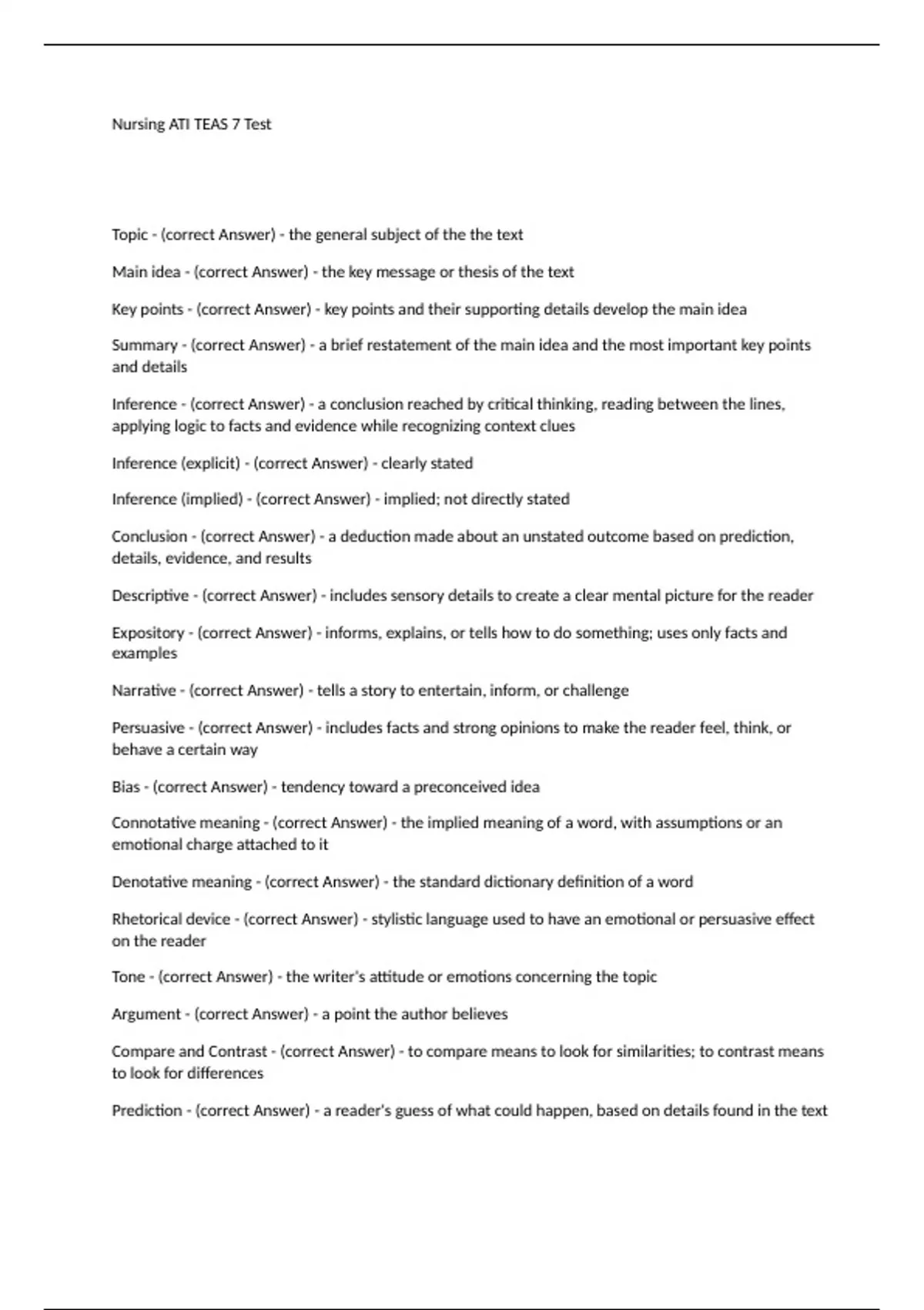 Inference - (correct Answer) - a conclusion reached by critical thinking, reading between the lines,