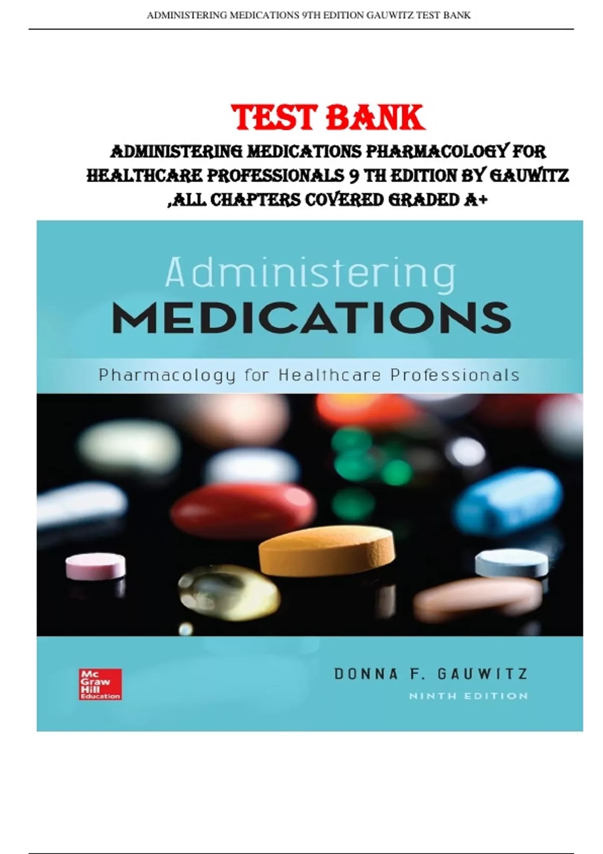 , ADMINISTERING MEDICATIONS 9TH EDITION GAUWITZ TEST BANK