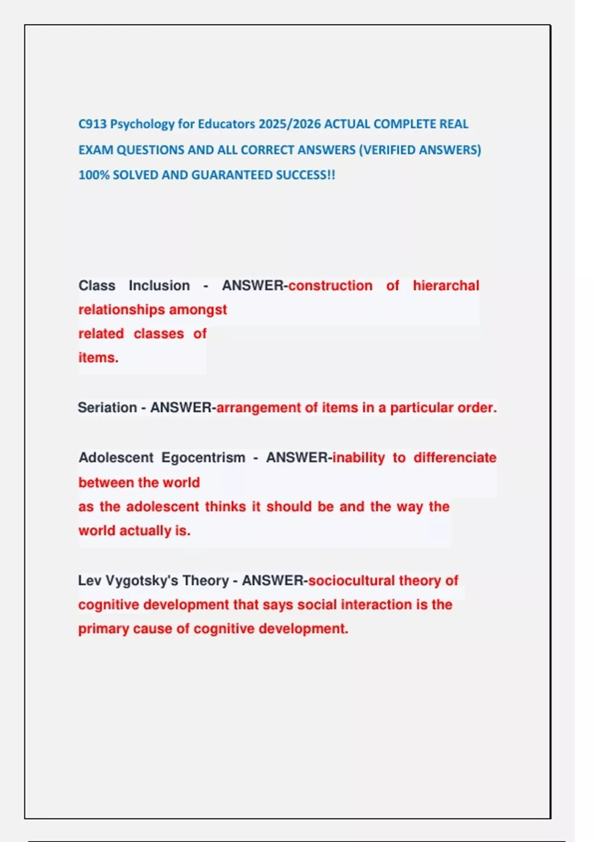 EXAM QUESTIONS AND ALL CORRECT ANSWERS (VERIFIED ANSWERS)