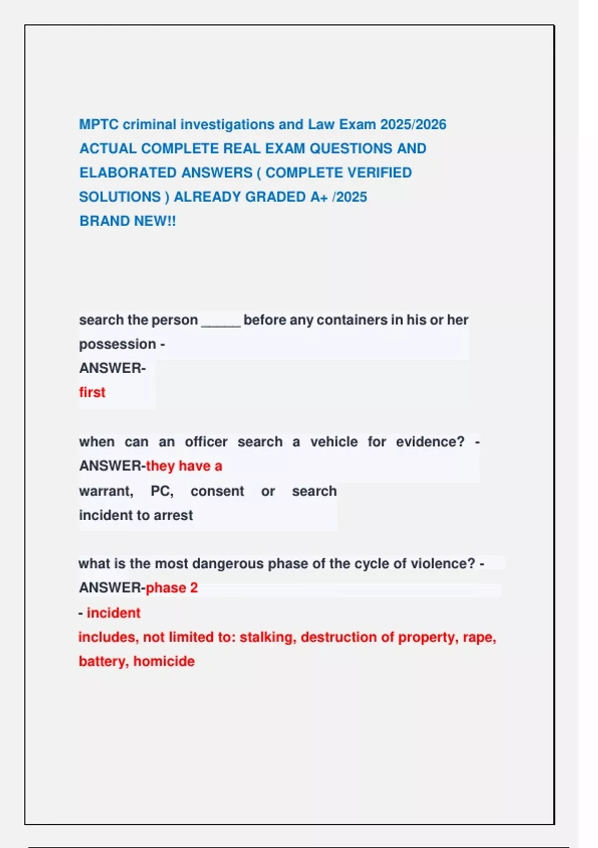 ACTUAL COMPLETE REAL EXAM QUESTIONS AND