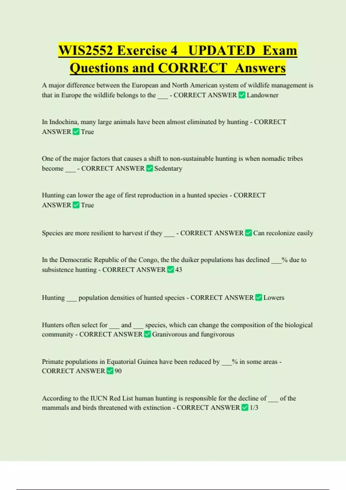 , For the sake of our bushmeat discussion of hunting are defined - CORRECT ANSWER 2