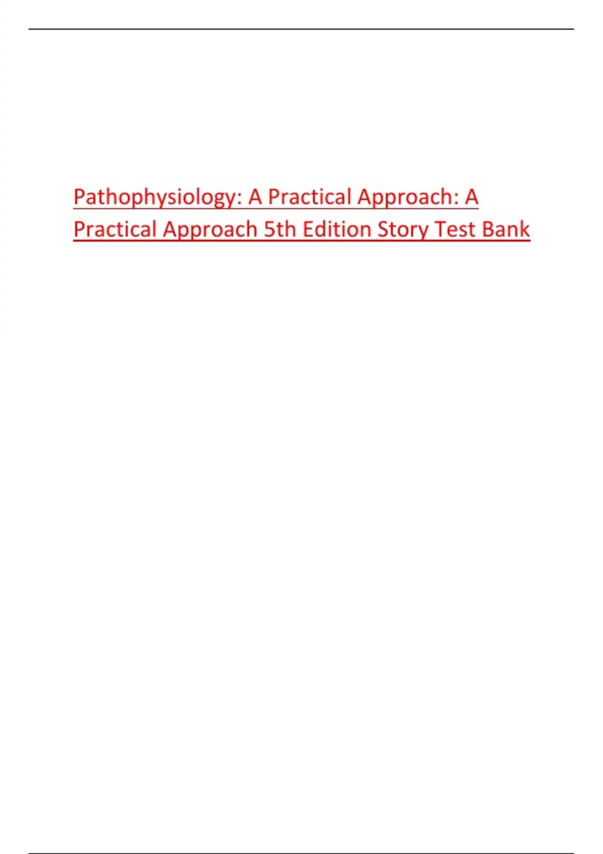 Test Bank For Pathophysiology: A Practical Approach 5th Edition by Lachel Story||LATEST EDITION