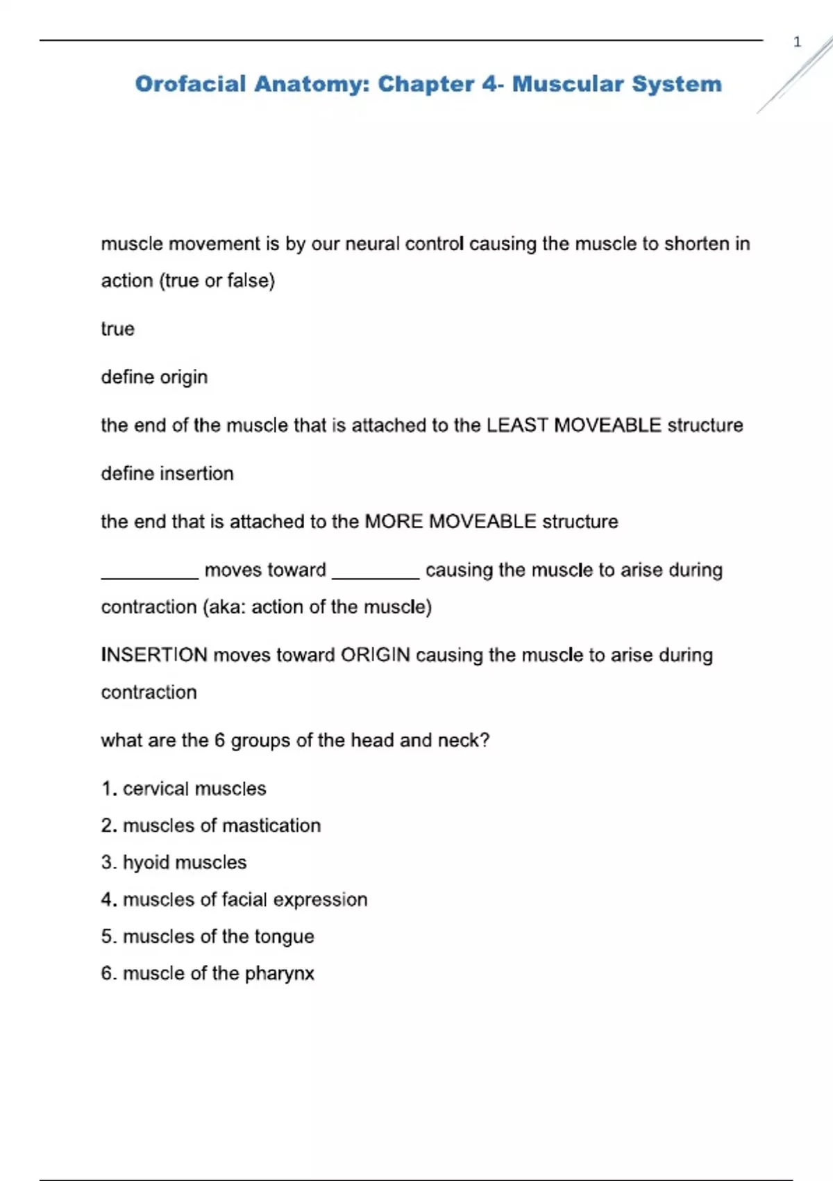 Orofacial Anatomy Chapter 4- Muscular System Questions and answers