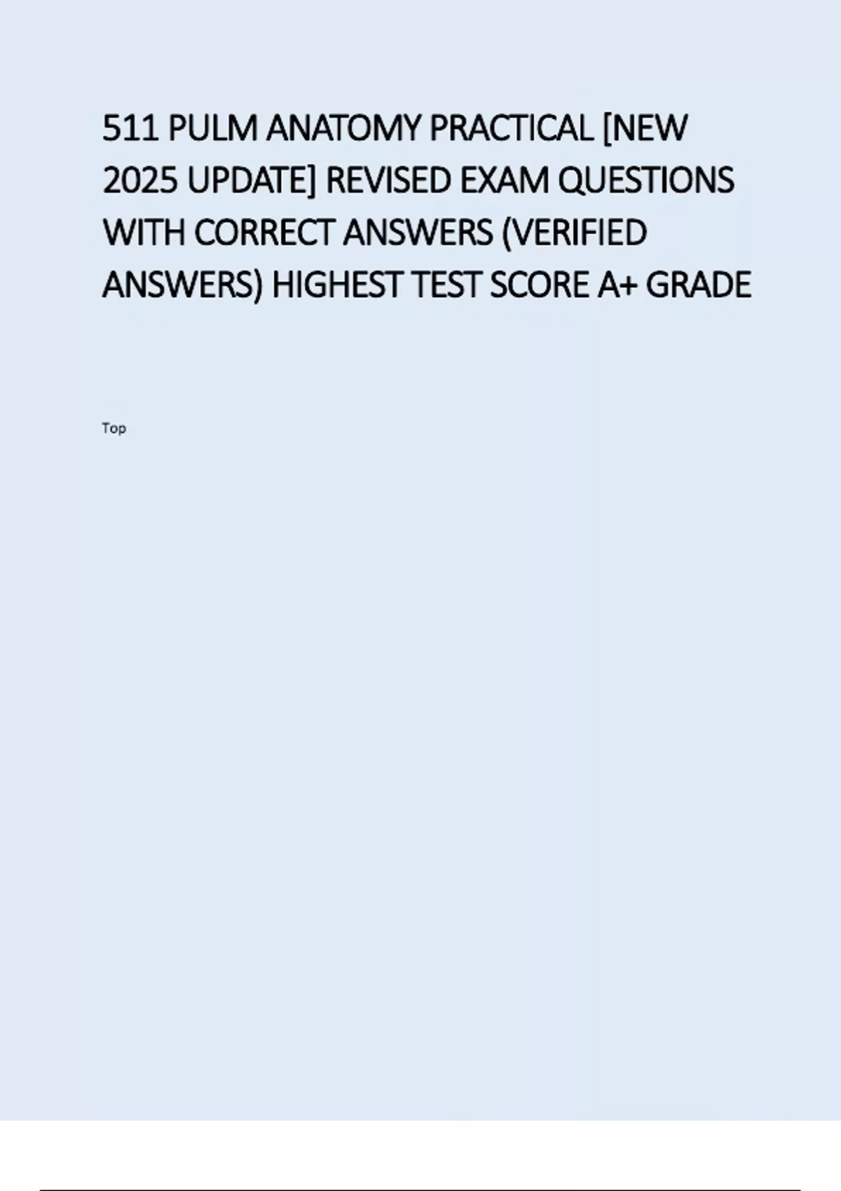 511 PULM ANATOMY PRACTICAL -NEW 2025 UPDATE- REVISED EXAM QUESTIONS AND DETAILED ANSWERS