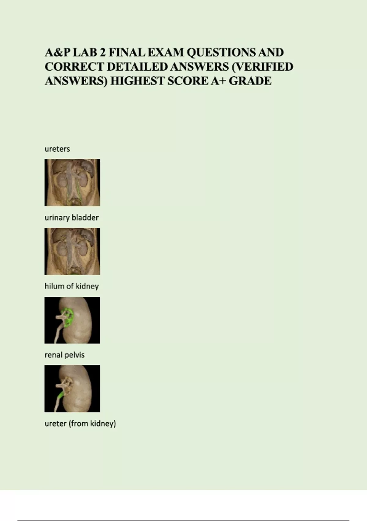 A&P LAB 2 FINAL EXAM QUESTIONS AND CORRECT DETAILED ANSWERS (VERIFIED ANSWERS)