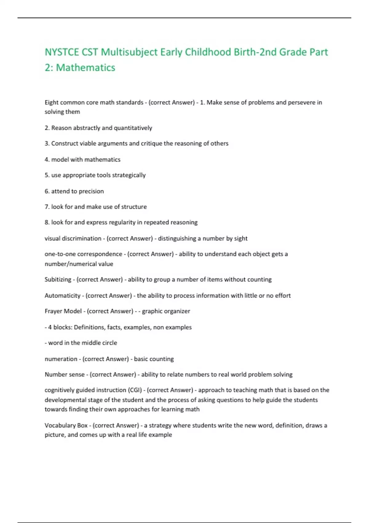 cognitively guided instruction (CGI) - (correct Answer) - approach to teaching math that is based on the