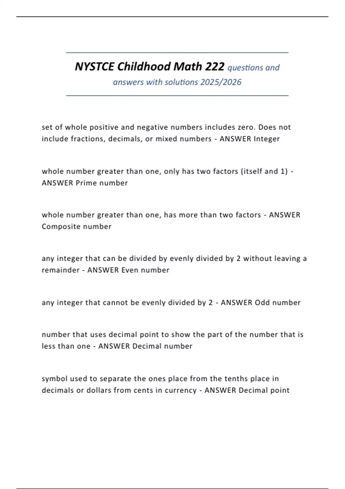include fractions, decimals, or mixed numbers - ANSWER Integer