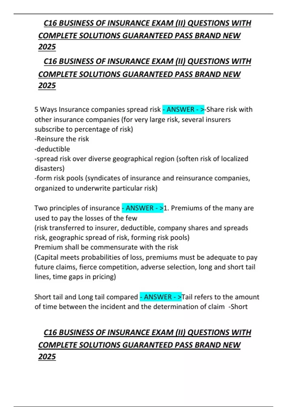 , C16 BUSINESS OF INSURANCE EXAM (II) QUESTIONS WITH