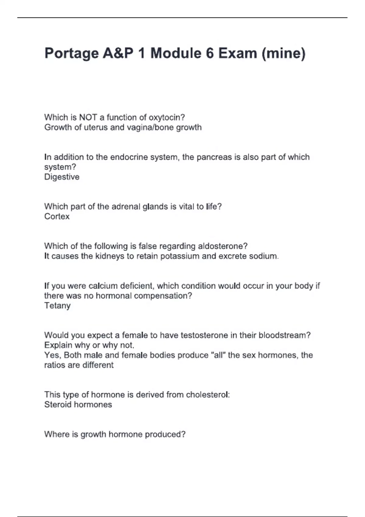 Portage A&P 1 Module 6 Exam (mine )Questions & answers