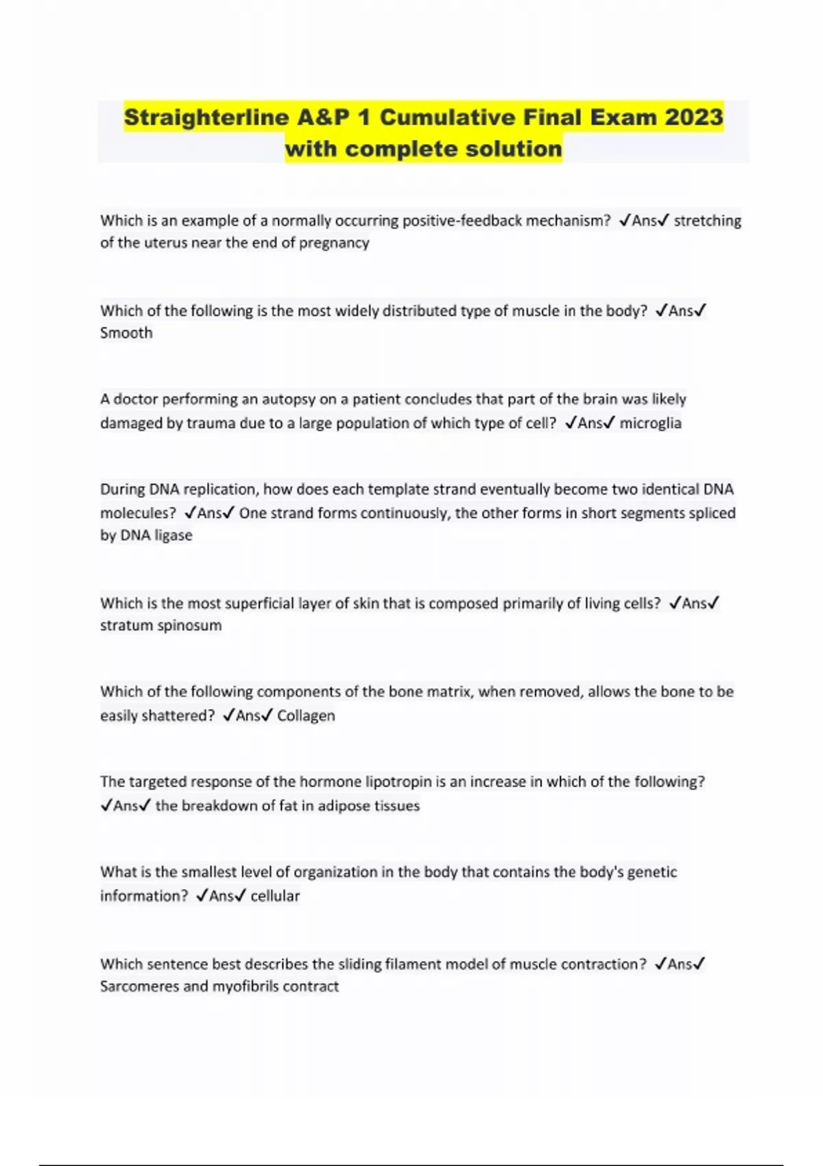 Straighterline A&P 1 Cumulative Final Exam. Questions with complete solution
