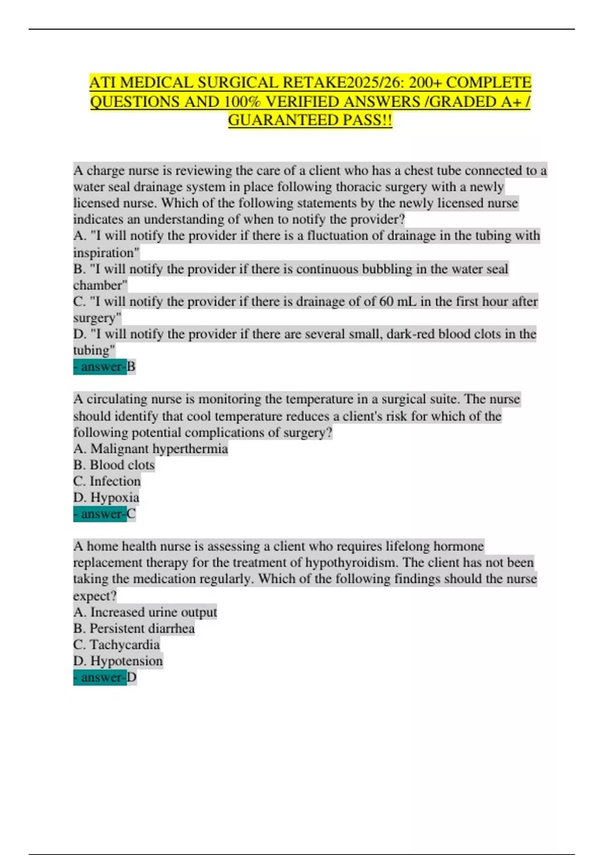 ATI MEDICAL SURGICAL RETAKE2025/26: 200+ COMPLETE