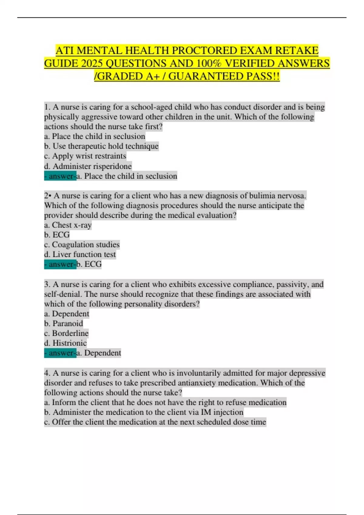 2025 ATI Mental Health Proctored Exam Retake Guide: 100% Verified Questions & Answers (Guaranteed Pass)
