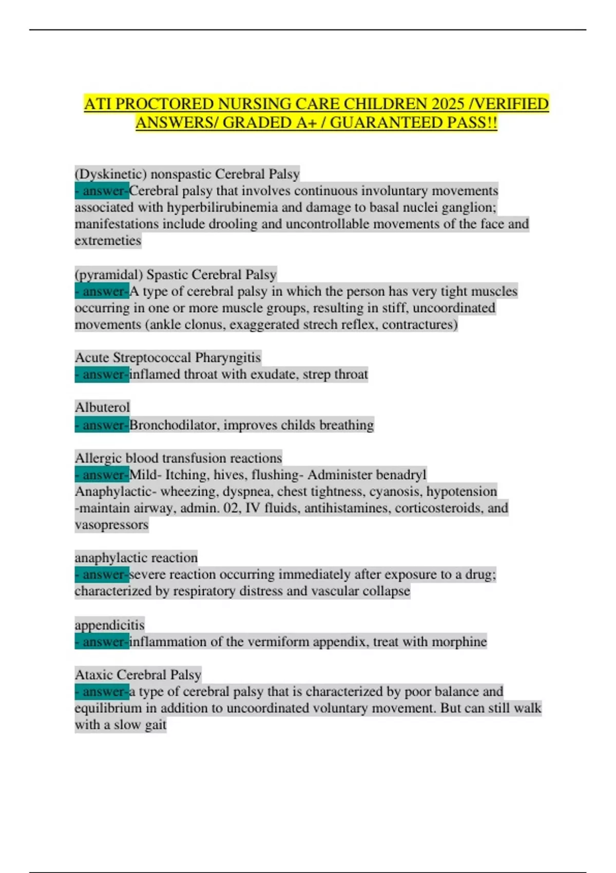 ANSWERS/ GRADED A+ / GUARANTEED PASS!!