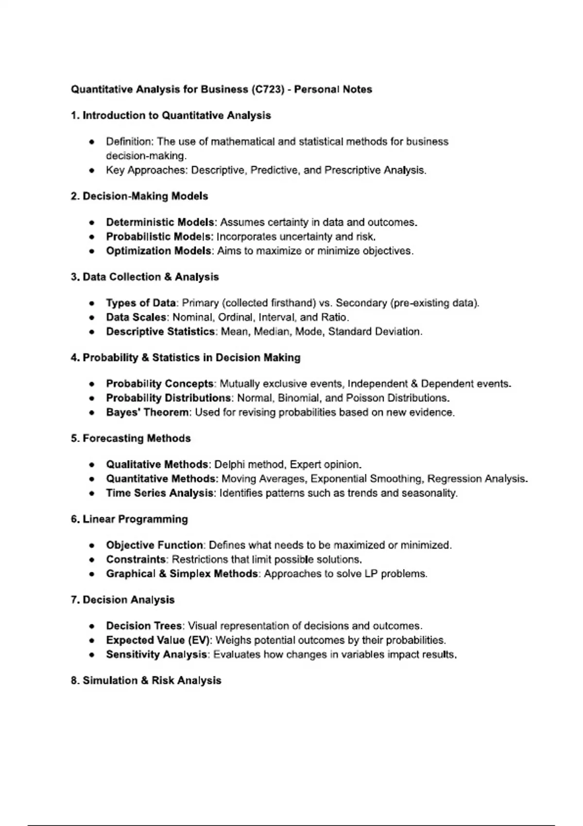 Quantitative Analysis for Business (C723) - Study Notes Overview QUESTIONS AND VERIFIED ANSWERS 100% CORRECT