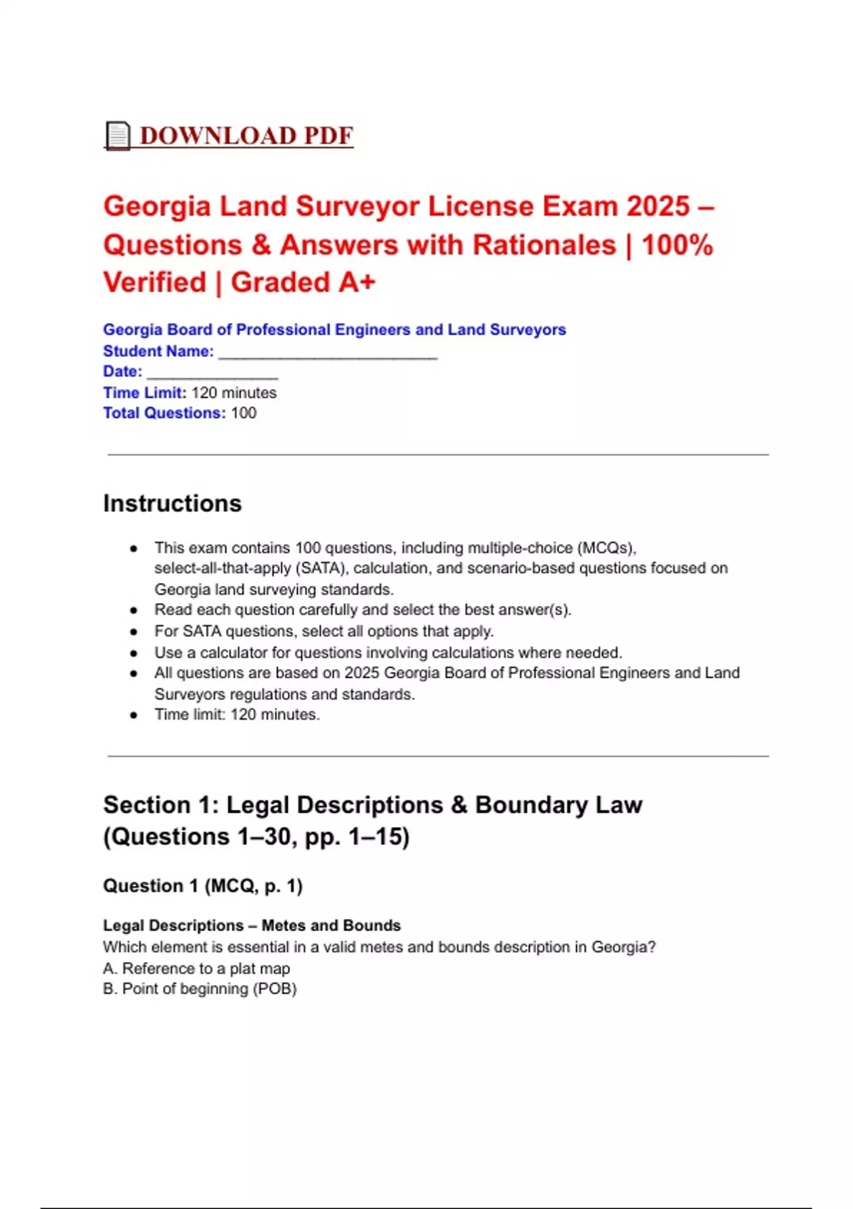 ● All questions are based on 2025 Georgia Board of Professional Engineers and Land
