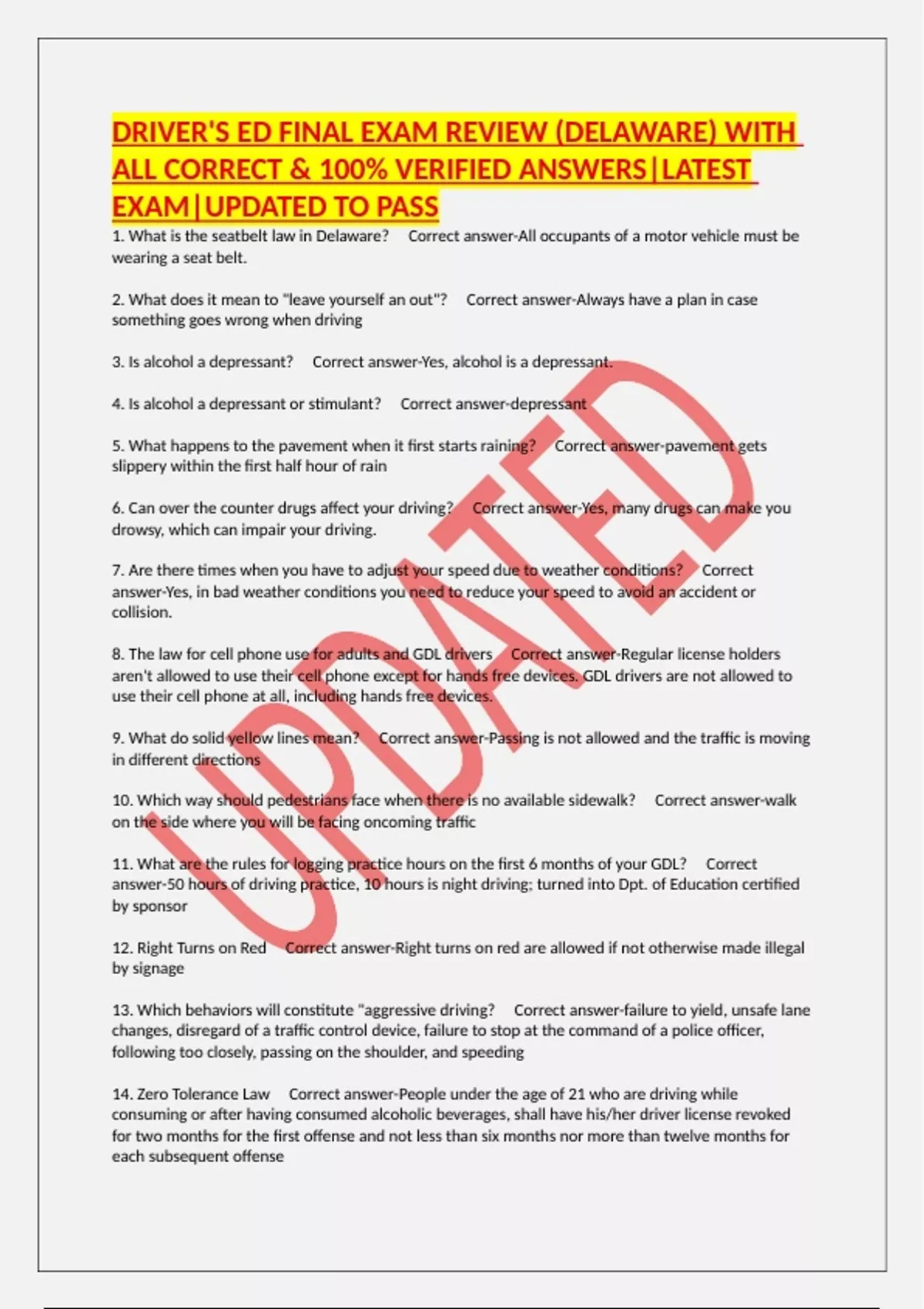 1. What is the seatbelt law in Delaware? Correct answer-All occupants of a motor vehicle must be