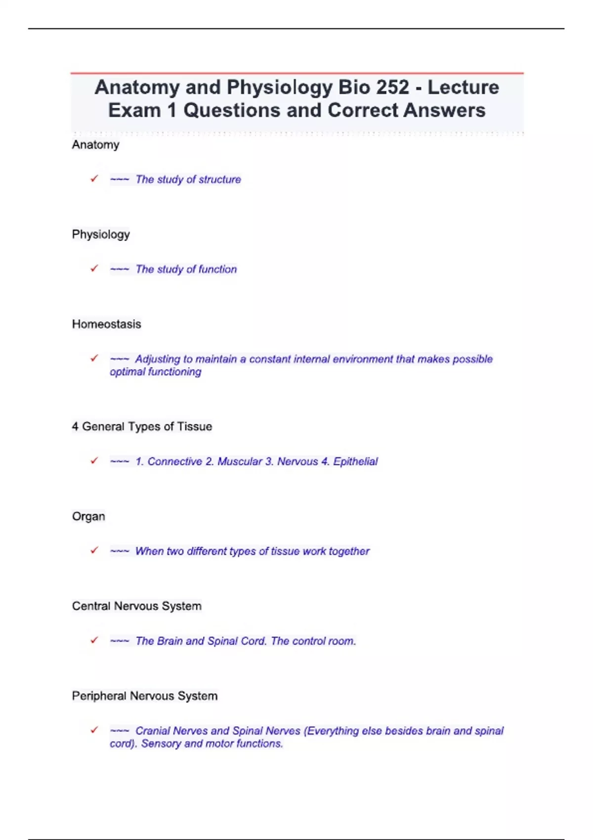 Anatomy and physiology bio 252 EXAM QUESTIONS AND DETAILED ANSWERS