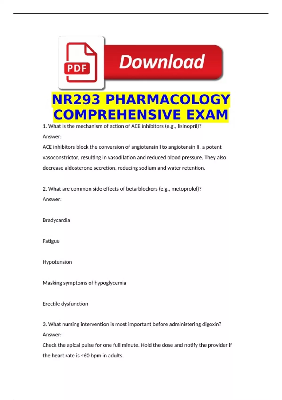 1. What is the mechanism of action of ACE inhibitors (e.g., lisinopril)?