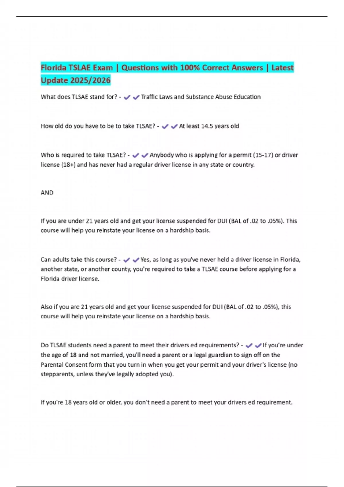 Florida TSLAE Exam | Questions with 100% Correct Answers | Latest Update 2025/2026