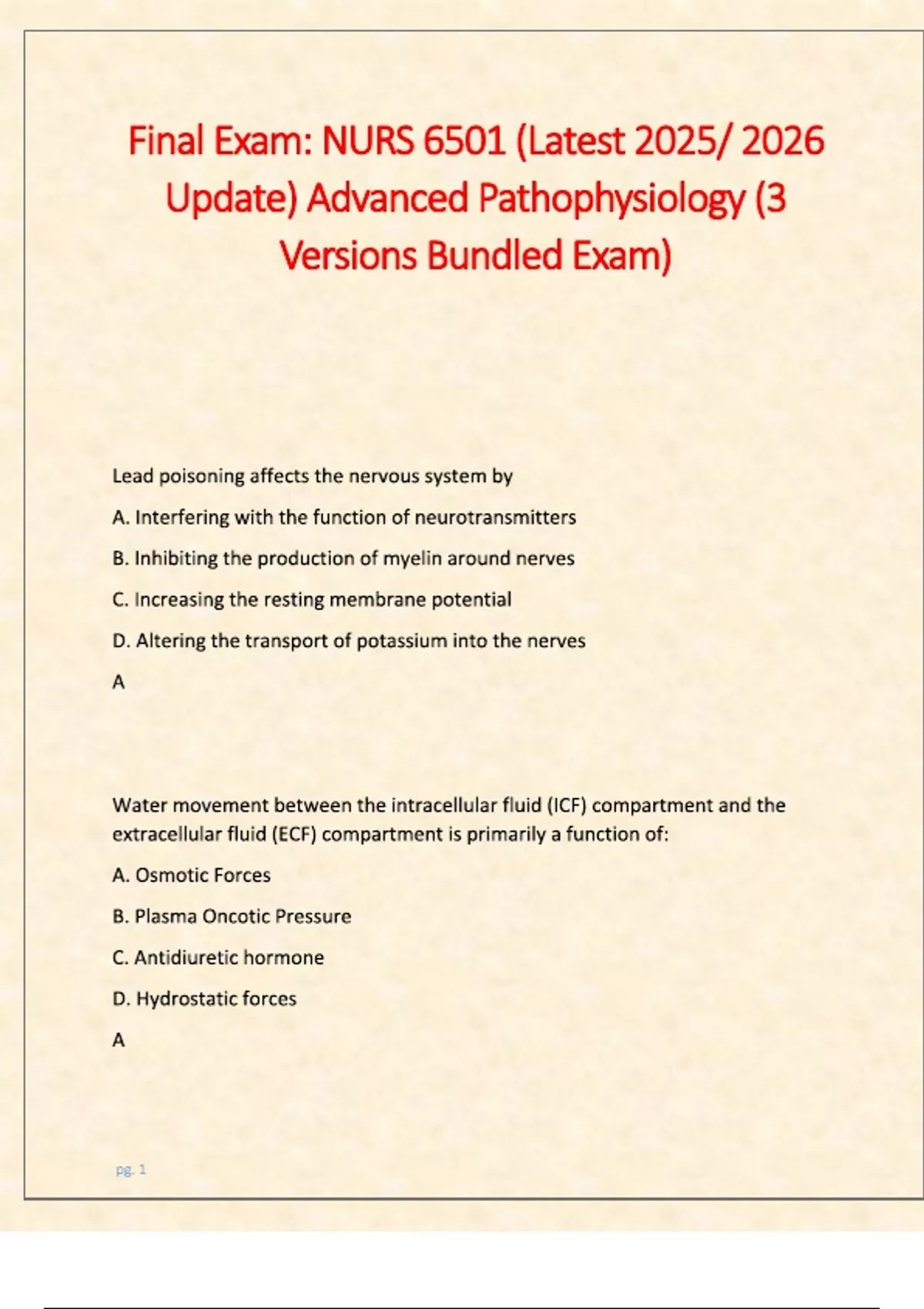 Final Exam NURS 6501 (Latest Update) Advanced Pathophysiology (3 Versions Bundled