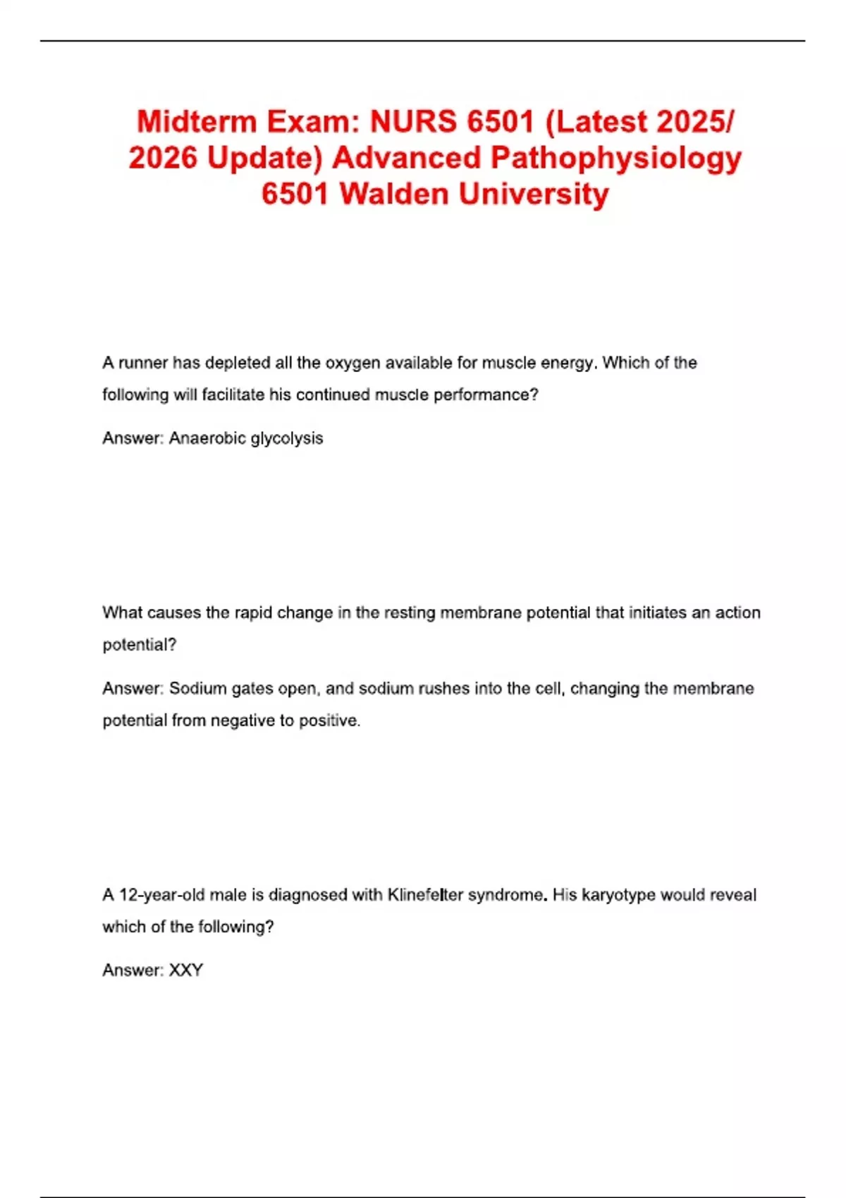 Midterm Exam NURS 6501 (Latest Update) Advanced Pathophysiology 6501 Walden University.