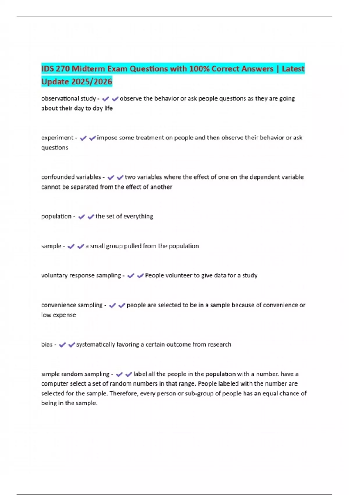 IDS 270 Midterm Exam Questions with 100% Correct Answers | Latest Update 2025/2026