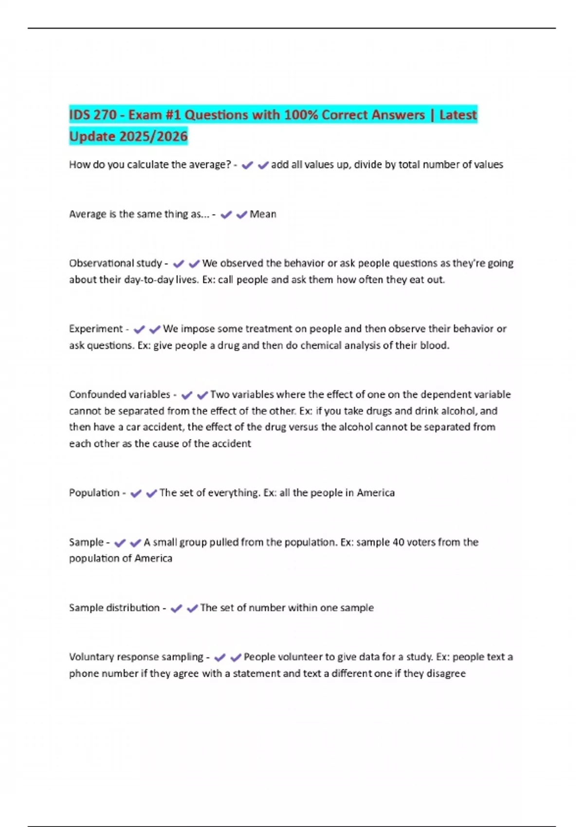 IDS 270 - Exam #1 Questions with 100% Correct Answers | Latest Update 2025/2026