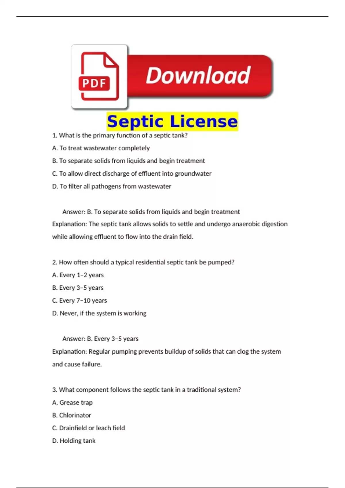 Septic License 100+ questions and answers all correct and verified A+ study tips.pdf