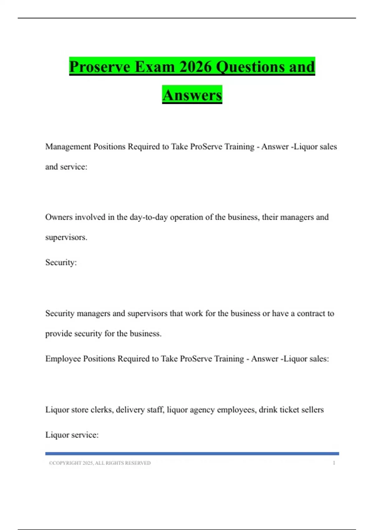 Management Positions Required to Take ProServe Training - Answer -Liquor sales