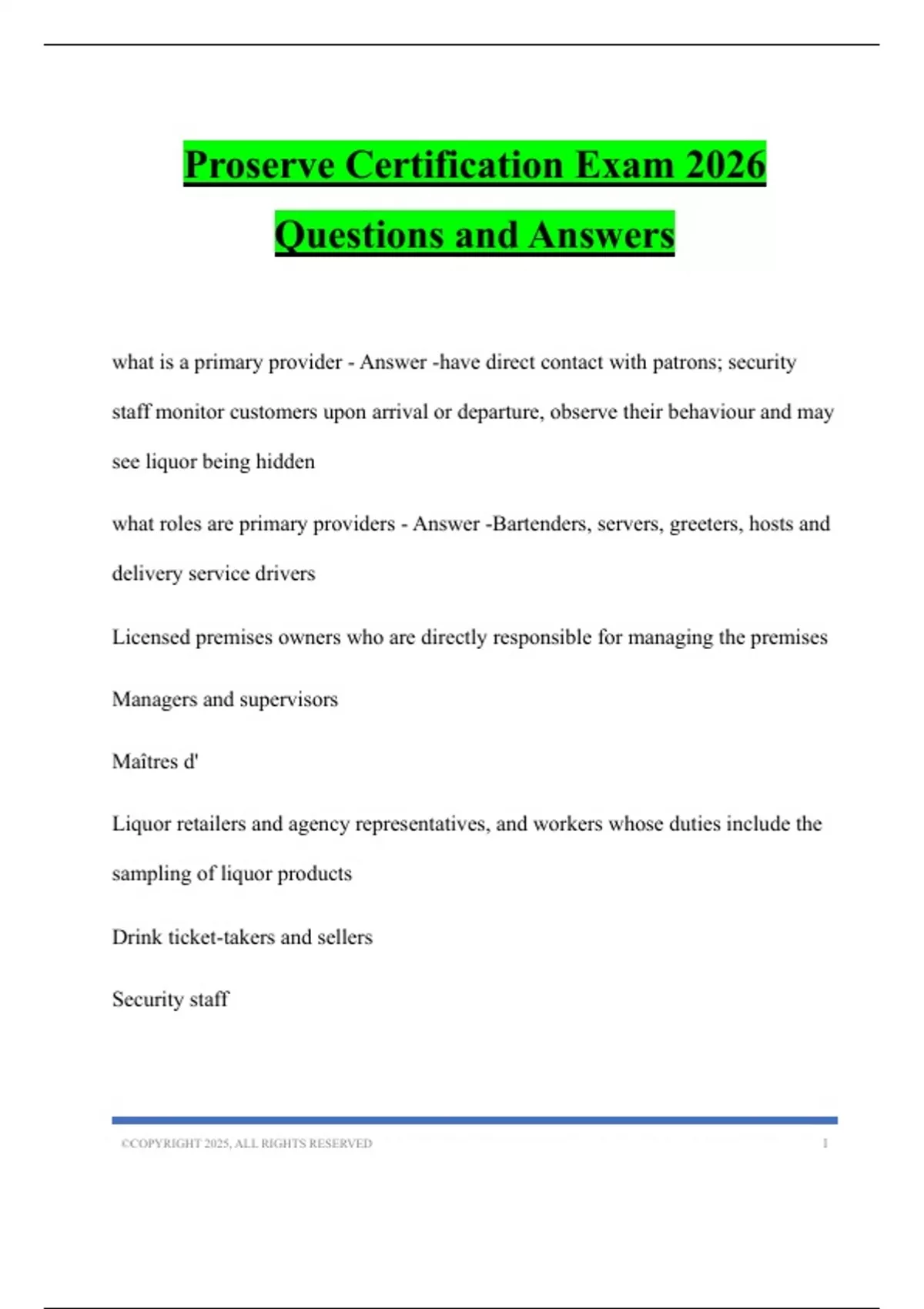 what roles are primary providers - Answer -Bartenders, servers, greeters, hosts and