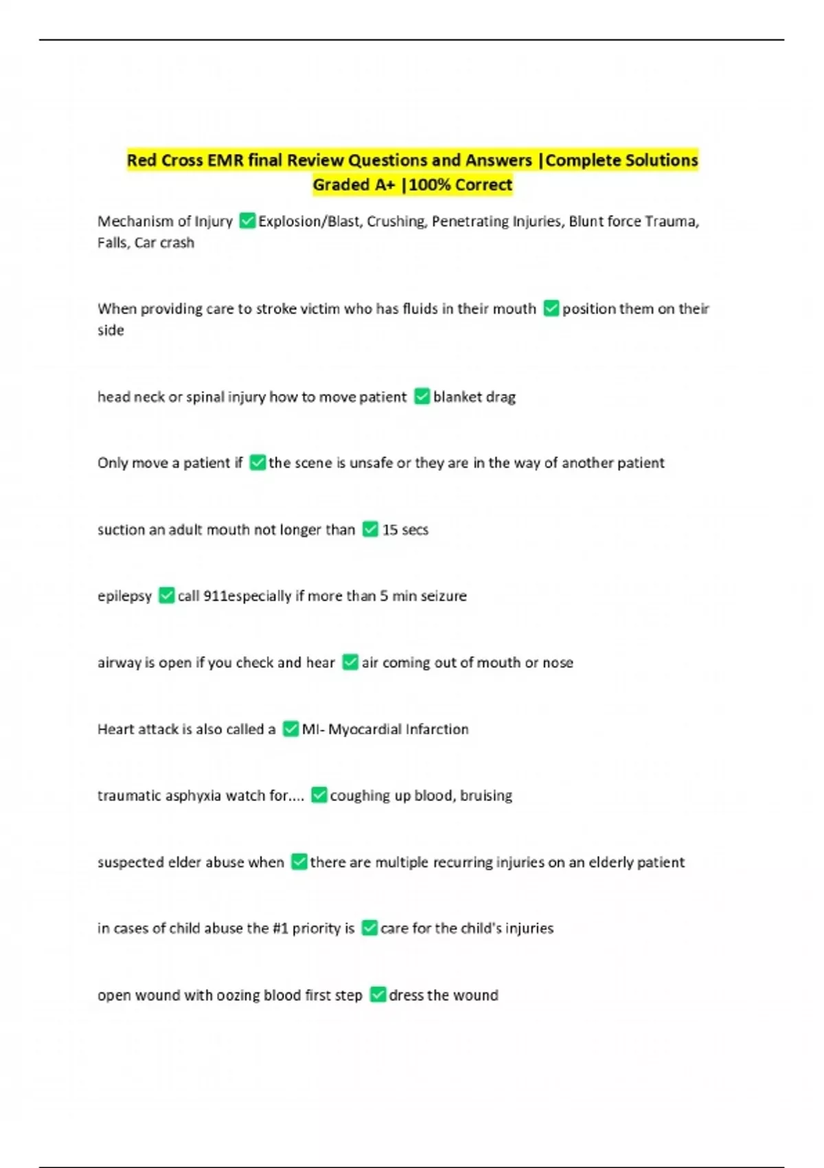 Red Cross EMR final Review Questions and Answers |Complete Solutions Graded A+ |100% Correct